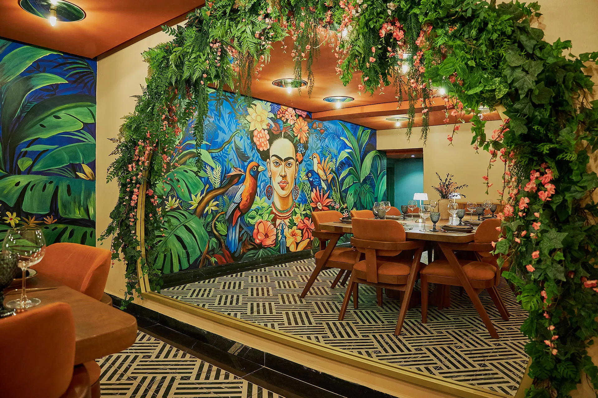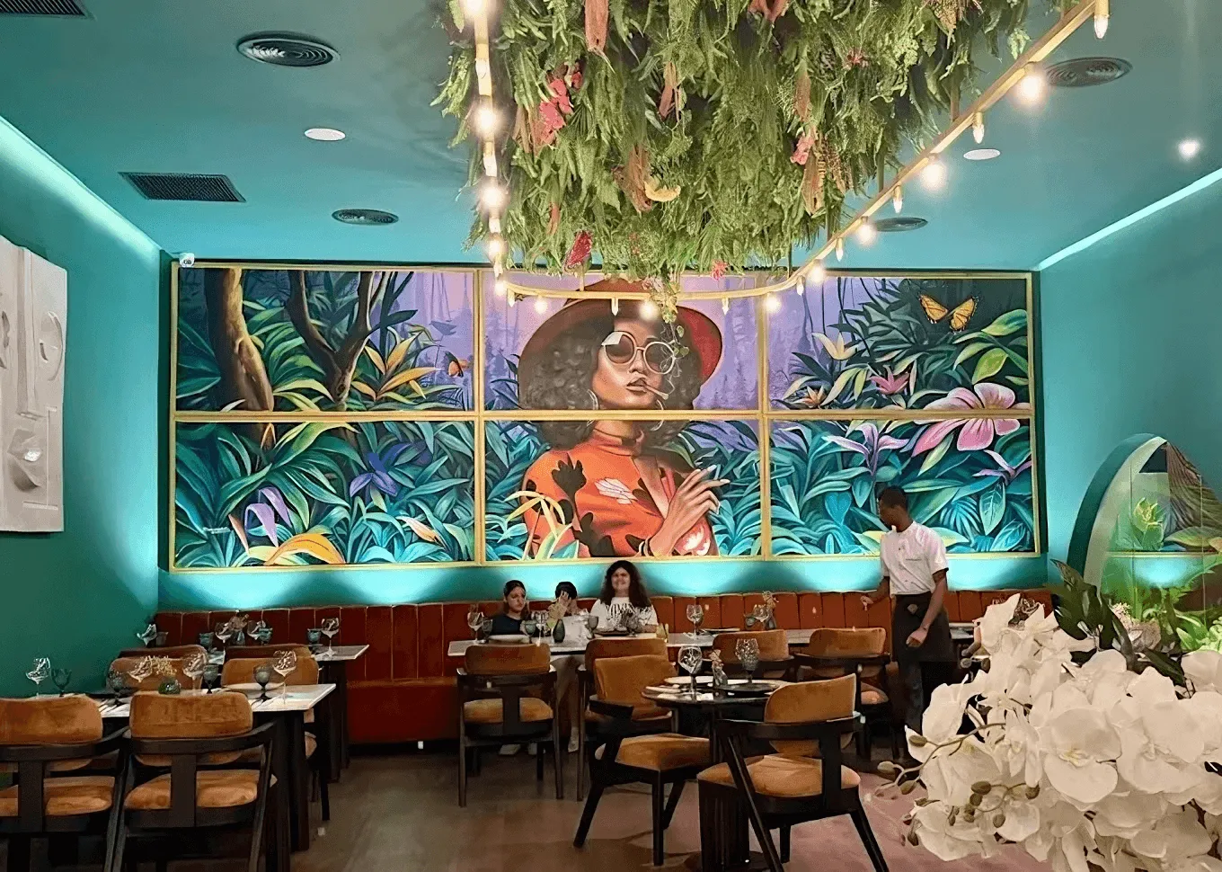 Experience Nomaada in a more formal setting in our dining room which features an air conditioned terrace and spectacular views of our theatrical open kitchen. Sit back and relax amongst the luscious foliage, velvet banquets and jungle textures in room that boasts of both beautiful outside tables and fully-enclosed seating too. Guests can enjoy our full A La Carte, Sushi or Business Lunch menu from 12 noon.